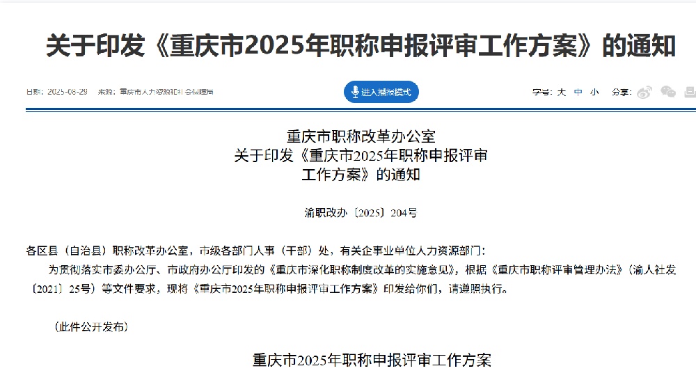 重慶市2025年職稱(chēng)申報(bào)評(píng)審工作方案出通知啦!